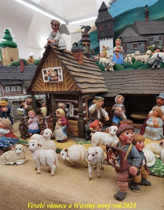 Dřevěný betlém, postupně vyřezávaný Davidem Prachařem,