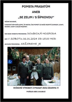Povánoční akce v Doubici:Fotografie ze silvestrovského posezení v Doubické hospodě poslala Hanka Bohuslávková a jsou v galerii na zoneramě. Silvestrovský fotbálek - Memoriál Oldy Sahajdáka se konal 31.12.2023