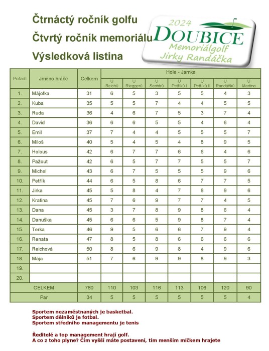4. ARCHÍV zpráv doubického webu (od léta 2018 do konce 2025) :1. GOLF DOUBICE OPEN 2018 |