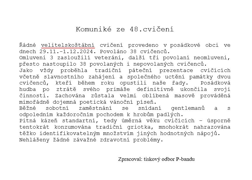 42. doubické cvičení42. tradiční a tajné velitelskoštábní cvičení se konalo od pátku 30.11. do neděle 2.12.2018 ve štábní budově a okolních cvičištích v obci. 27 fotografií je ve fotogalerii Honzy Matyáše.