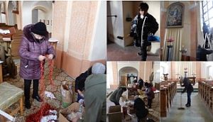 Úklid a zdobení kostelaFotografie z úklidu a zdobení kostela jsou ve