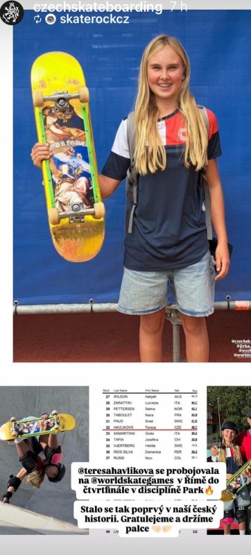 | Věra Dykastová nám poslala informaci od Skaterock.cz o skvělém umístění naší Terezky Havlíkové na světových hrách v Římě: |