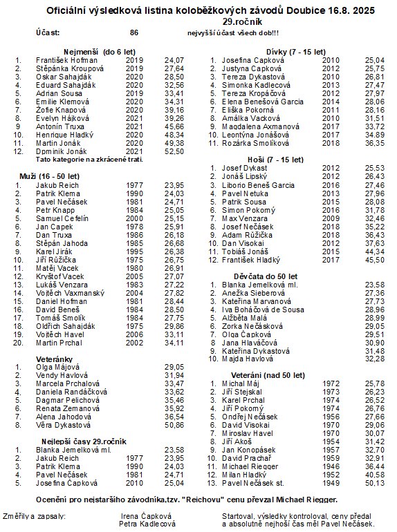 ![]() Fotografie Honzy Matyáše z koloběžek jsou v jeho fotogalerii na Zoneramě zde: A jako druhé dorazily fotografie Milana Hladkého a ty jsou v jeho fotogalerii také v Zoneramě: Asi už 5. oprava výsledků koloběžek: |