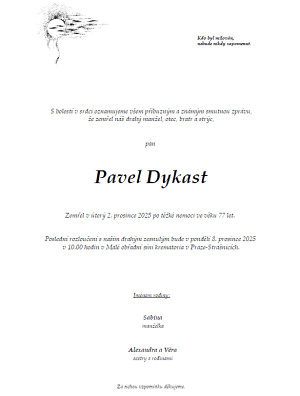 Zemřel Pavel Dykast